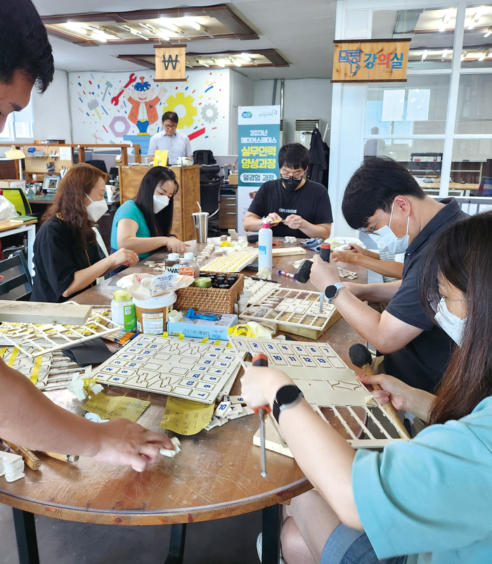 기자가 둘러본 1층과 2층의 작업 공간에는 3D 프린터, 레이저 절단기. CNC 가공기, 용접기, 많은 목재와 철재 등이 있고, 벽에는 공구들이 가지런히 정렬돼 있었다. 무언가를 만들기 위해 단계별로 필요한 공구들을 능숙하게 다뤄 원하는 작품을 만든 후, 땀을 뻘뻘 흘리면서도 자신이 만든 작품을 진지한 눈빛으로 바라보며 회심의 미소를 짓는 젊은 남성들의 로망의 장소라는 생각이 들었다. 그러나 정작 젊은 남성들은 마음뿐, 시간 제약으로 자주 찾지 못하고, 학생, 교수, 꽁냥꽁냥 물건을 만드는 주부들이 많이 찾아 온다고 한다.