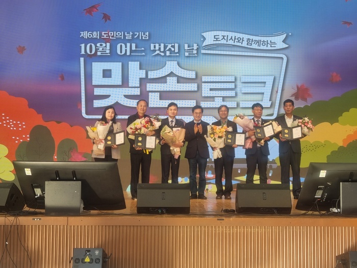 전병찬 전국농업기술자협회 경기도연합회 이사가 21일 수원제1야외음악당에서 개최된 경기도민의날 행사에서 농어촌 발전에 기여한 공로로 경기도지사상을 수상했다.